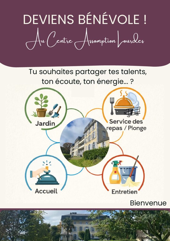 Vous pouvez venir au Centre comme bénévole. Formule économique pour profiter à la fois des Sanctuaires et de Lourdes, de la maison et de la communauté des sœurs.